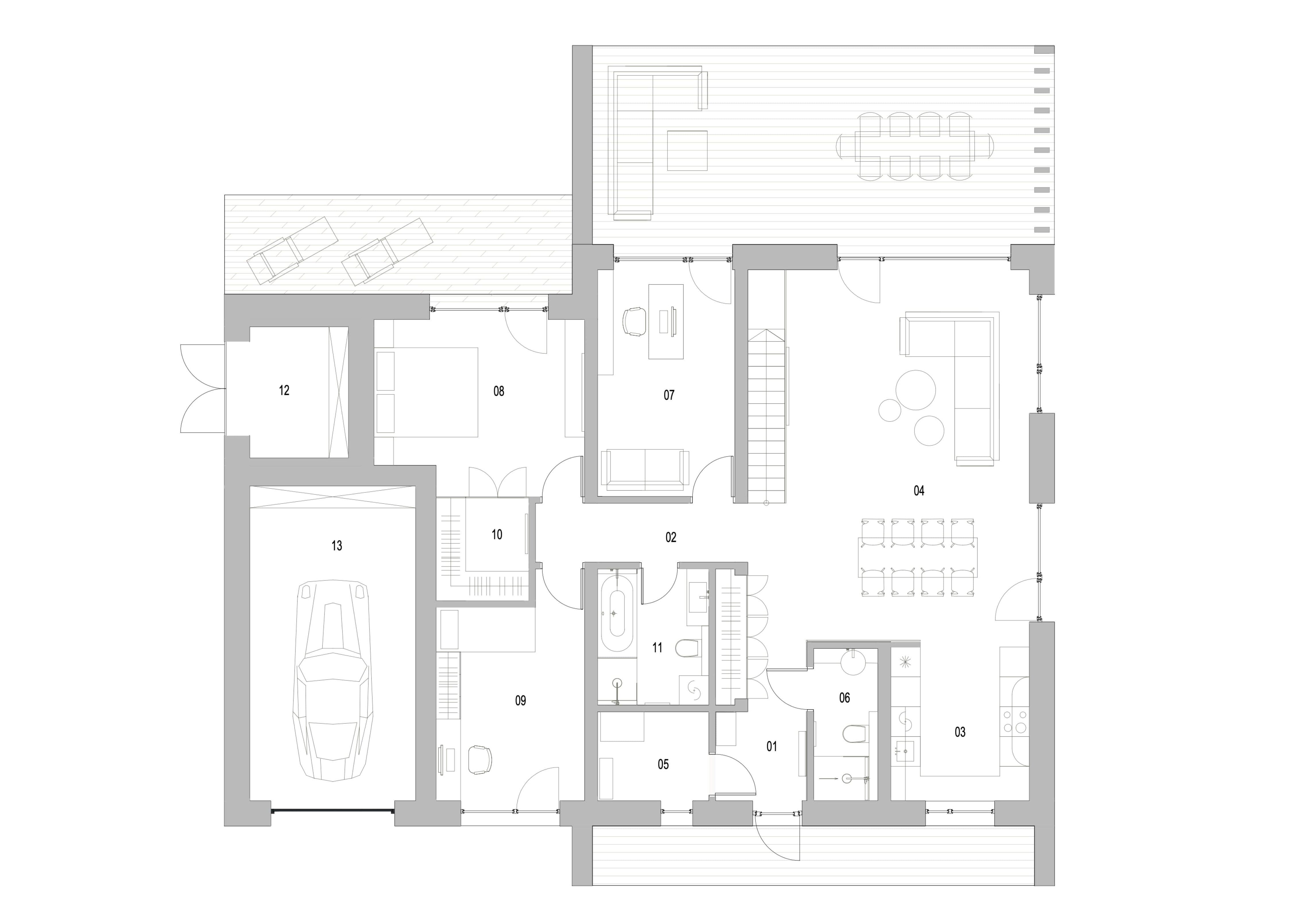 Pažangiausia “ALUPROF” MB-86N sistema skirta A++ klasės pastatams, trijų stiklų paketas (grūdinti stiklai), aliuminis profilis su šilumos pertrauka (Uw=0,70 W/m²K), matinė antracito pilka spalva iš abiejų pusių, su šilto krašto tarpinėmis.