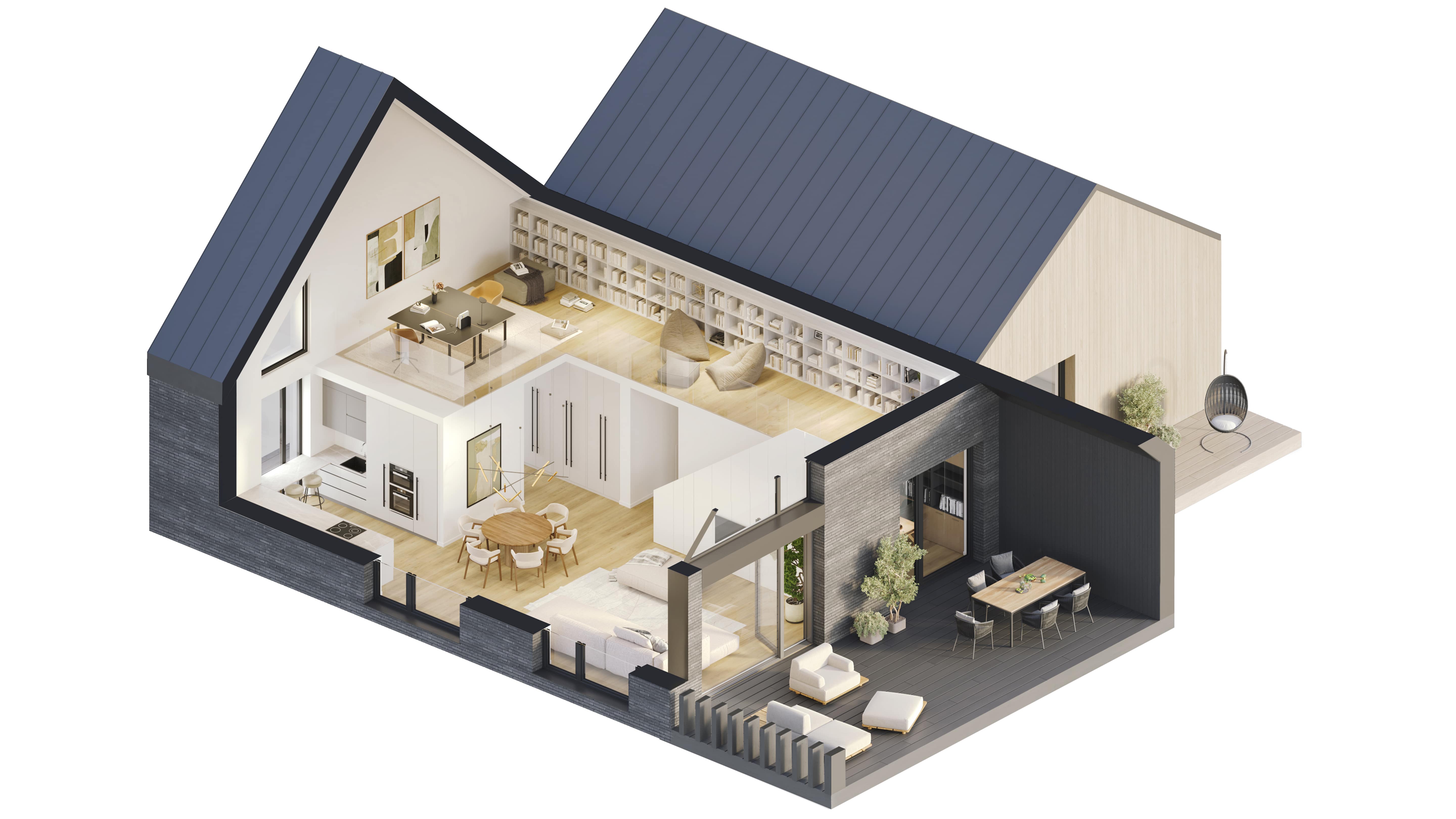 Kombinuota sistema iš pjautos klinkerio plytos ir medienos